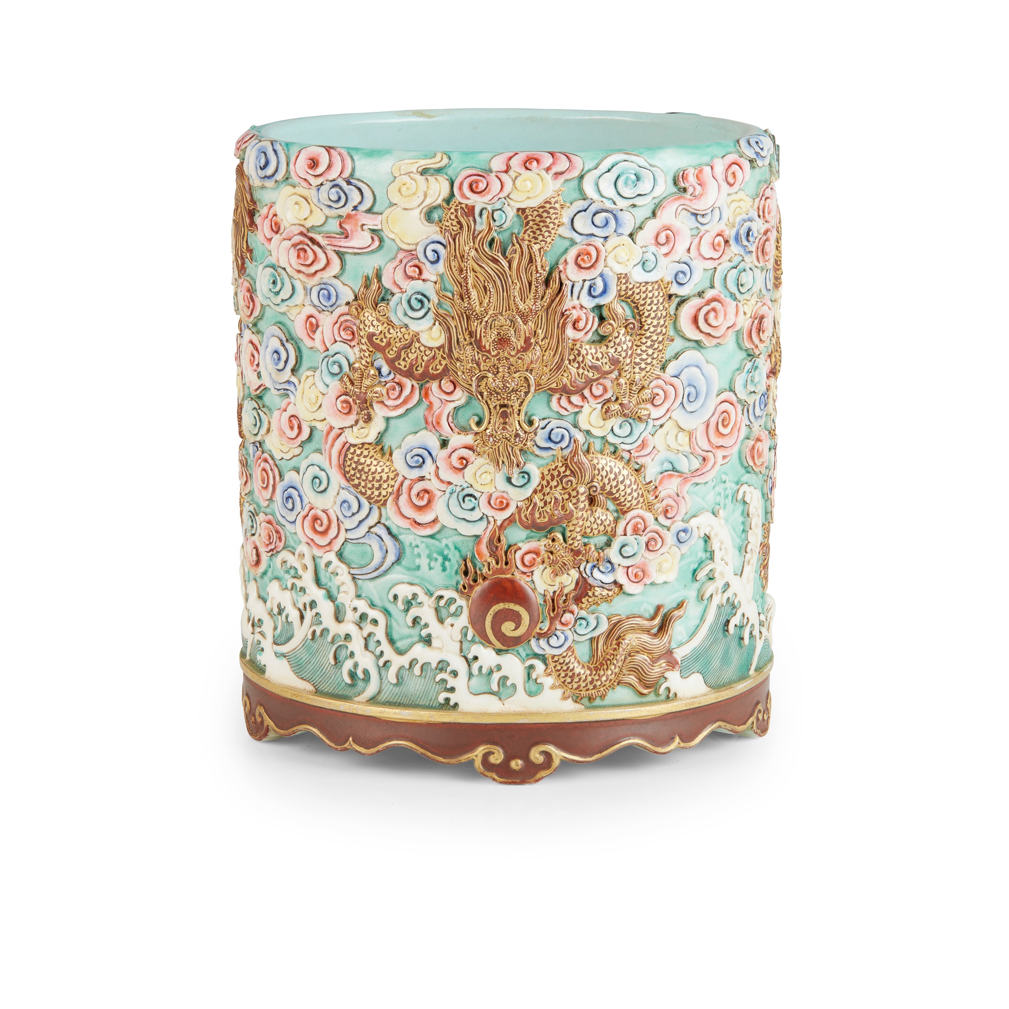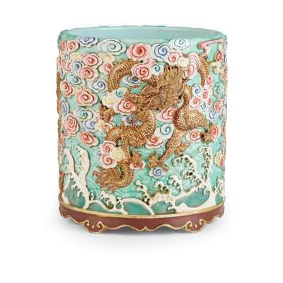 TURQUOISE-GROUND FAMILLE ROSE 'DRAGON' BRUSH POT