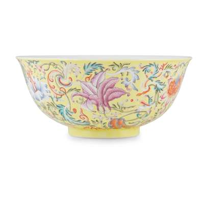 YELLOW-GROUND FAMILLE ROSE BOWL