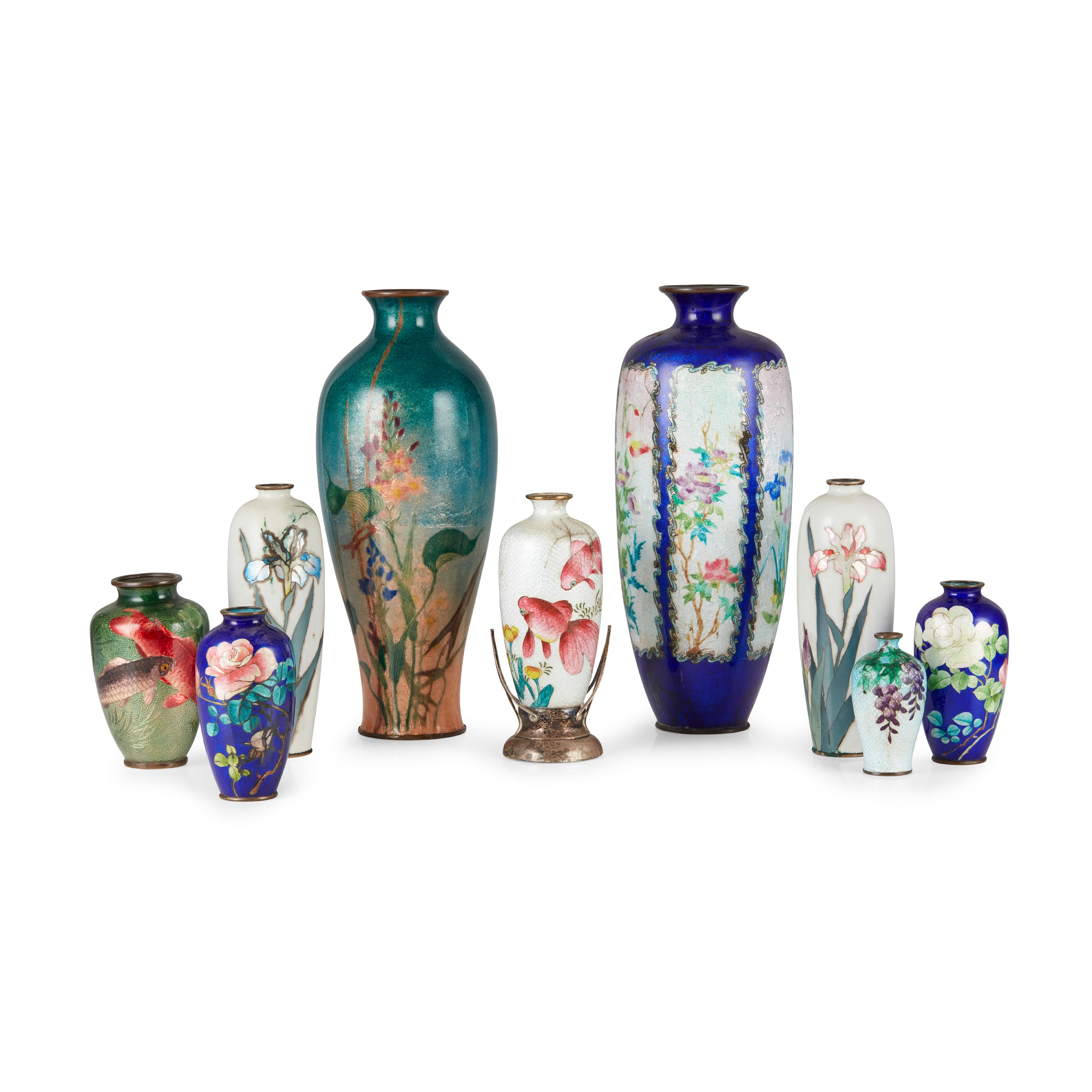 GROUP OF NINE CLOISONNÉ ENAMEL VASES