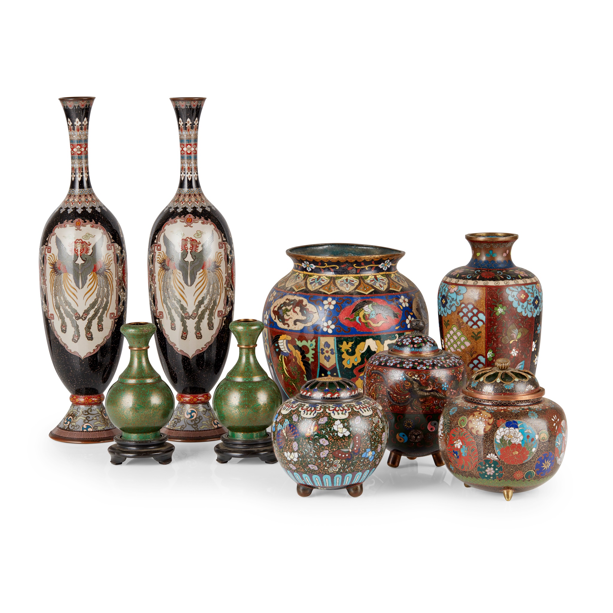 GROUP OF NINE CLOISONNÉ ENAMEL WARES
