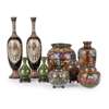 明治 各色銅胎掐絲琺瑯瓶、罐及爐(一組九件)