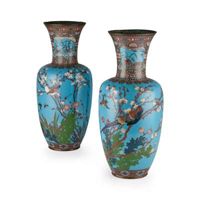 PAIR OF LARGE CLOISONNÉ ENAMEL VASES
