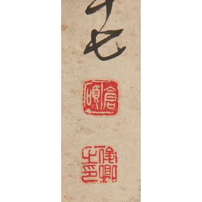 ink and colour on paper, signed and sealed of the artist, dated to Geng Shen year, correspondent to 1920AD, mounted as hanging scroll