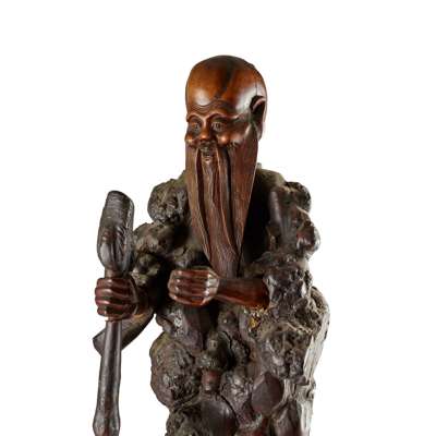 二十世紀 樹瘤根雕仙人擺件(共兩件)