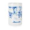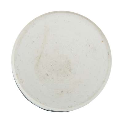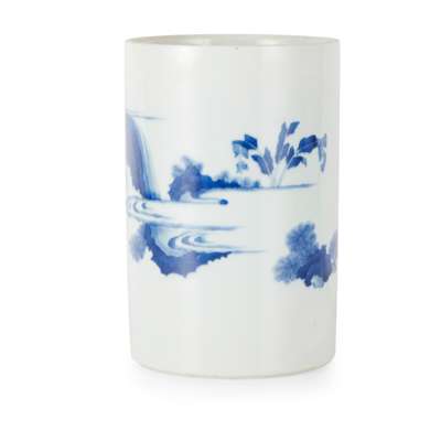 of cylindrical form, within two incised bands painted with figures in conversations, the base unglazed