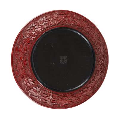十九至二十世紀 乾隆款 雕漆百蝠壽桃紋大盤