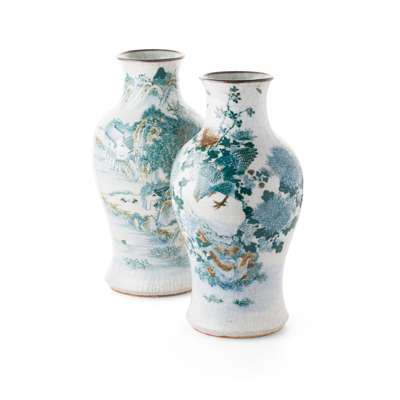 TWO FAMILLE VERTE CRACQUEL GLAZE BALUSTER VASES