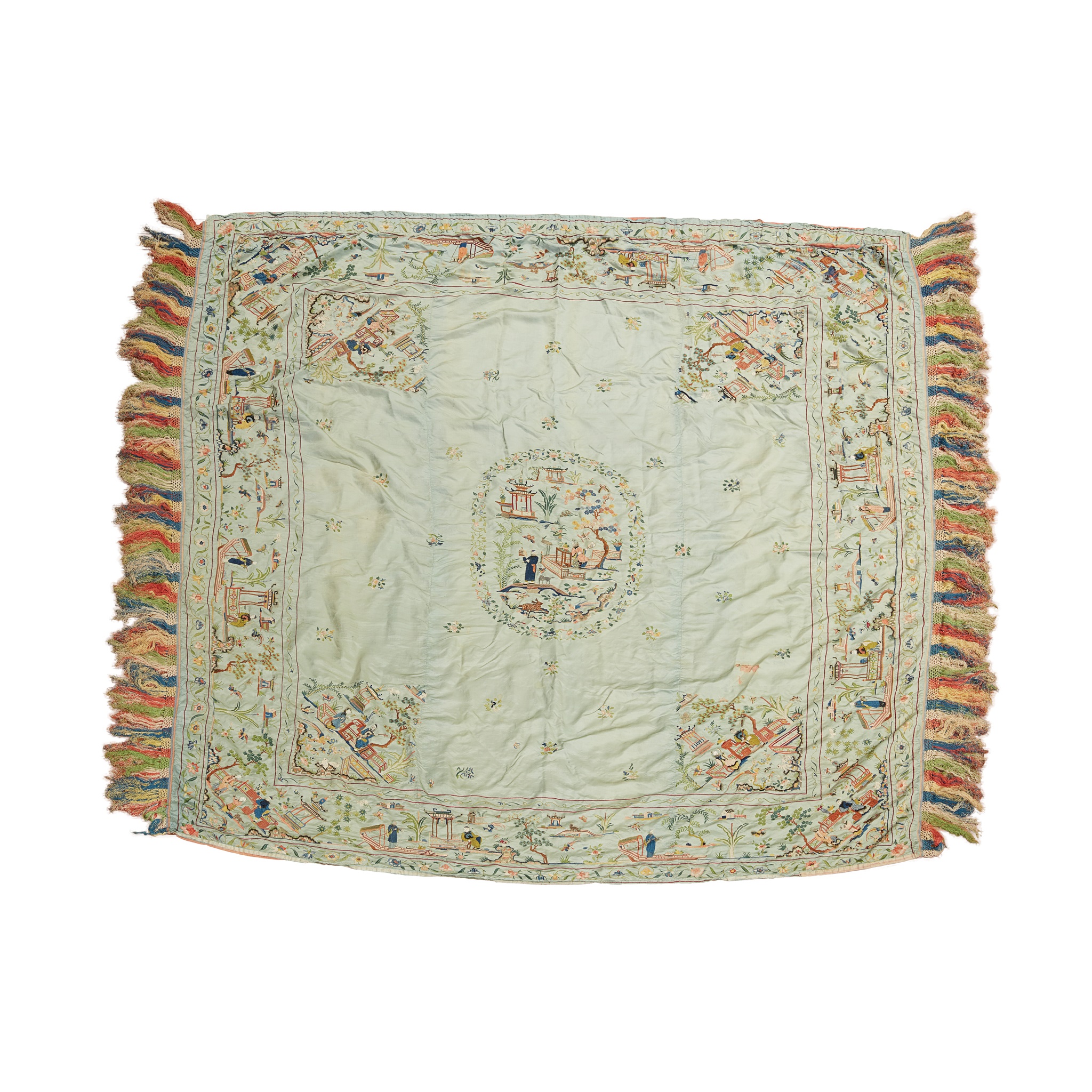 [A PRIVATE SCOTTISH COLLECTION] LARGE MINT-GROUND SILK EMBROIDERED BEDSPREAD