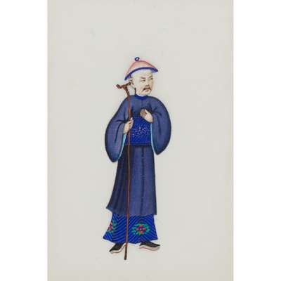清 廣東外銷人物圖通草畫 鏡框(共十七幅)