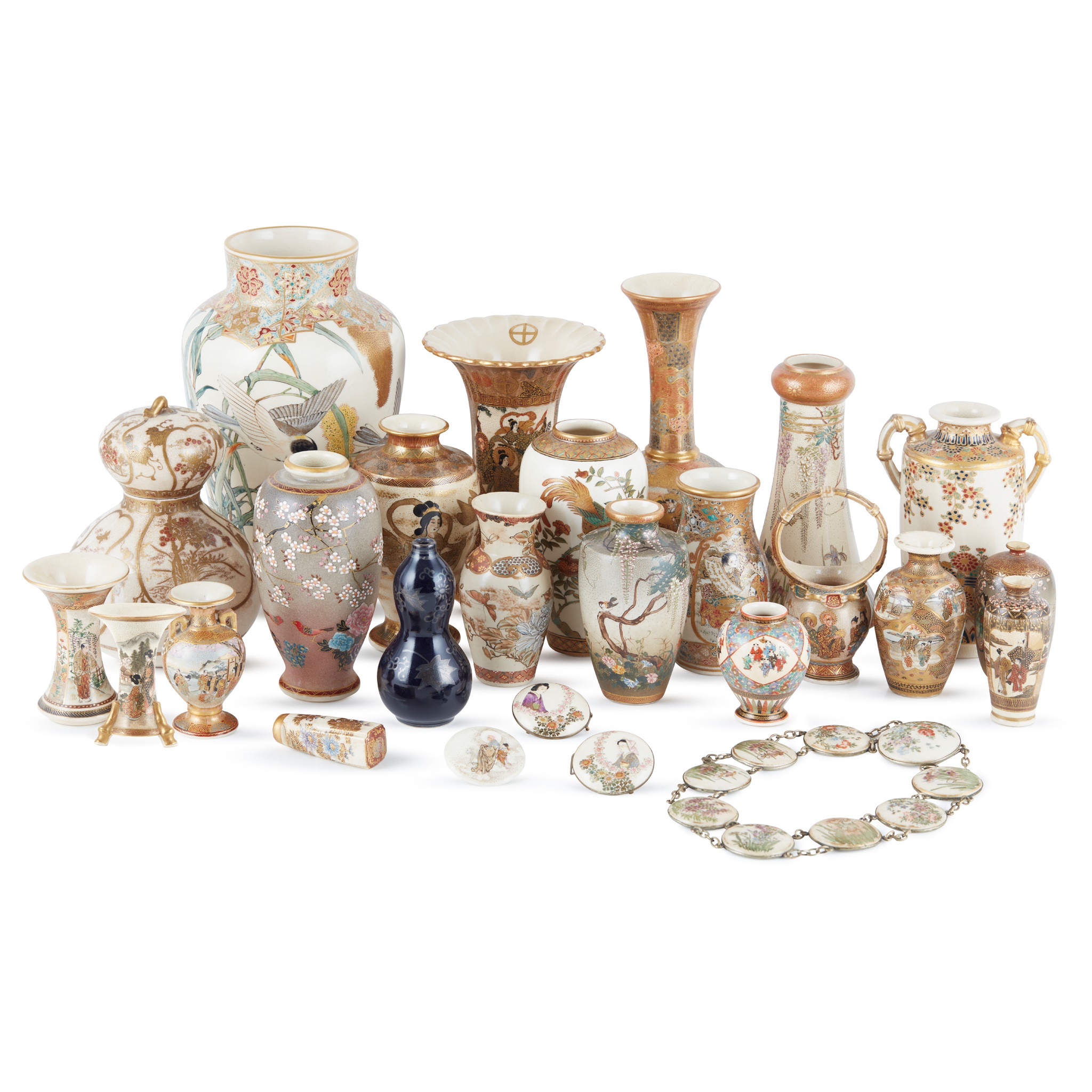 [A PRIVATE SCOTTISH COLLECTION] LARGE GROUP OF TWENTY-SIX SATSUMA WARES