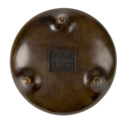 二十世紀 永樂款 銅鑄冲天耳三足爐