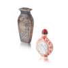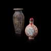 十九至二十世紀 乾隆款 礬紅墨彩山水題詩鼻烟壺 及 壽山石雕花卉紋小方瓶