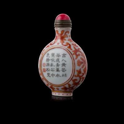 IRON-RED AND GRISAILLE-DECORATED SNUFF BOTTLE