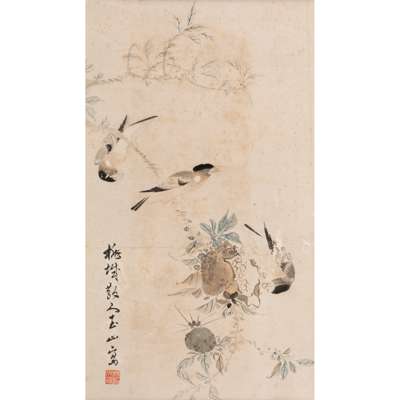 二十世紀 林玉山 石榴花鳥圖 設色紙本