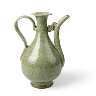 Note: A comparable example of a carved Longquan celadon ewer, dated to the early Ming dynasty, late 14th to early 15th century, was sold at Christie's New York, Lot 705.