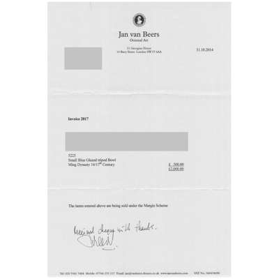 Provenance: Private Scottish collection, Elgin. Acquired from Jan van Beers Oriental Art, 31 Oct 2014, with an original receipt dating this piece to the Ming dynasty, 16th-17th century. The base with an associated label inscribed '5225'