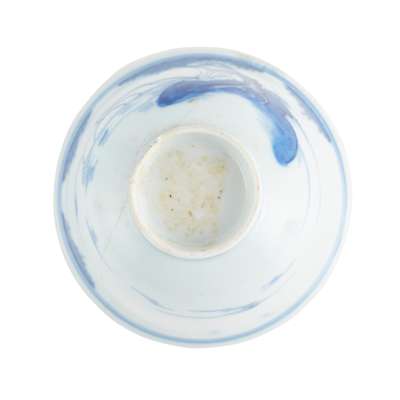 supported on a short straight foot and terminating to a stepped mouth rim, the exterior finely painted with a man fishing by a willow tree