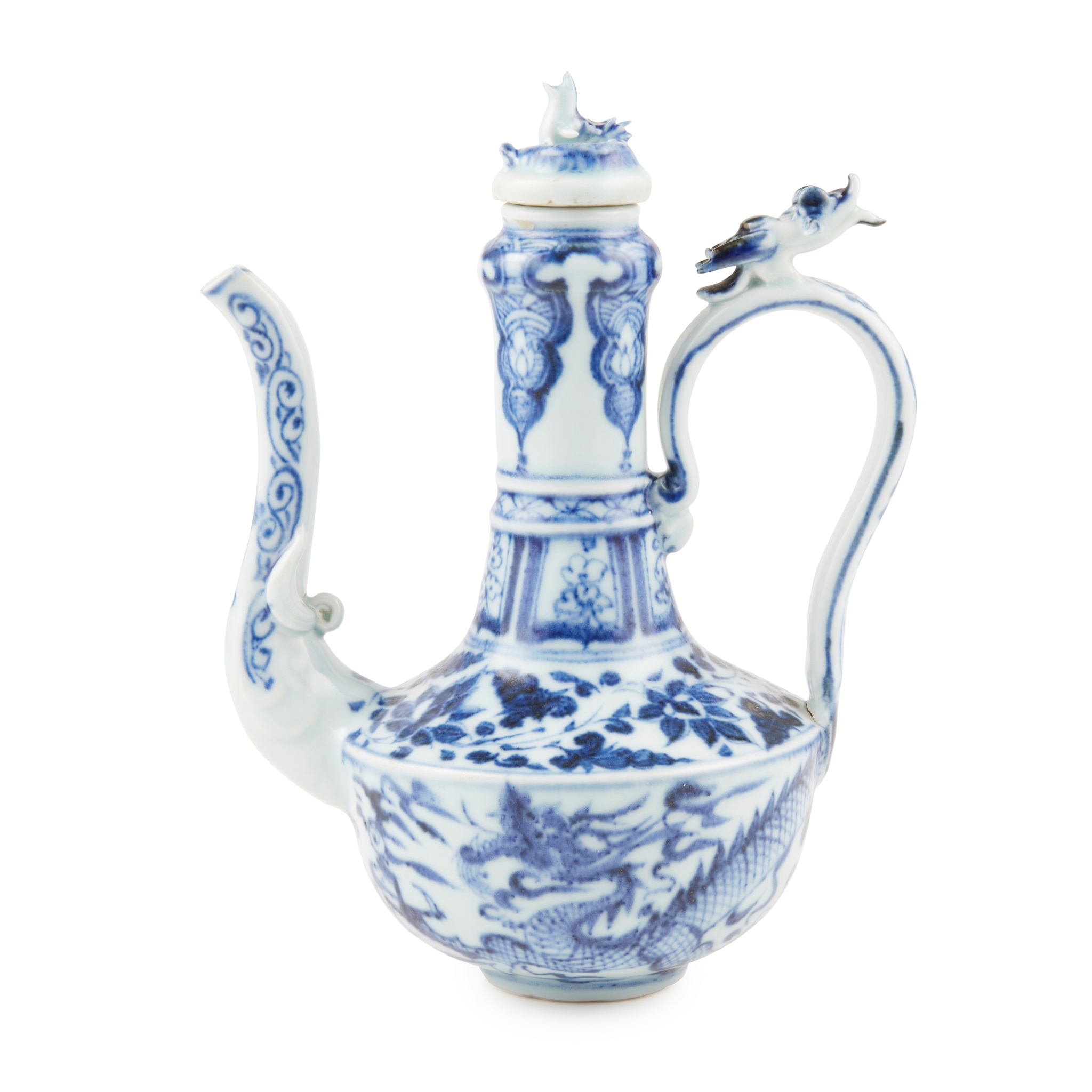 BLUE AND WHITE LIDDED 'DRAGON' WINE EWER