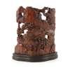 清 黃楊木透雕山水人物紋擺件 含隨形木座
