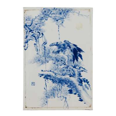 王步款 青花松鷹圖瓷板 木框