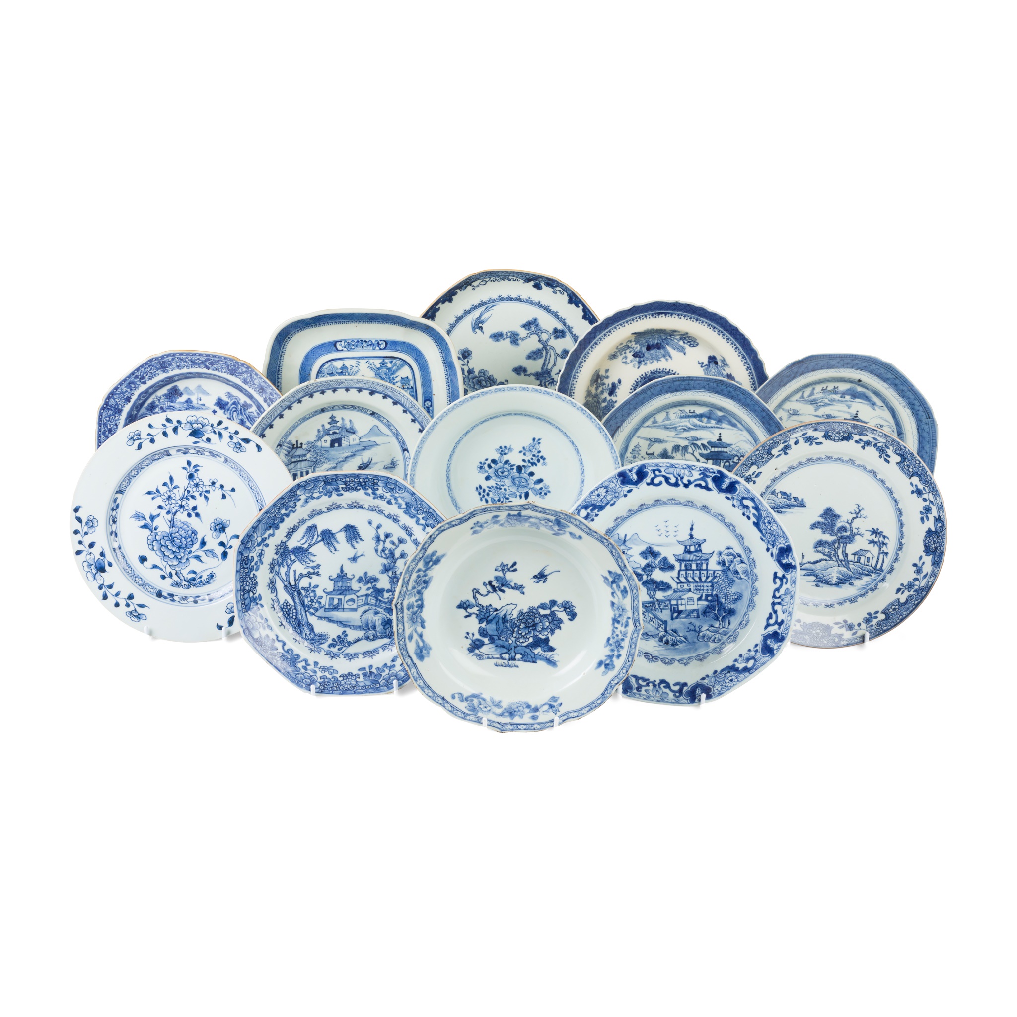 [A PRIVATE SCOTTISH COLLECTION] GROUP OF THIRTEEN EXPORT BLUE AND WHITE PLATES