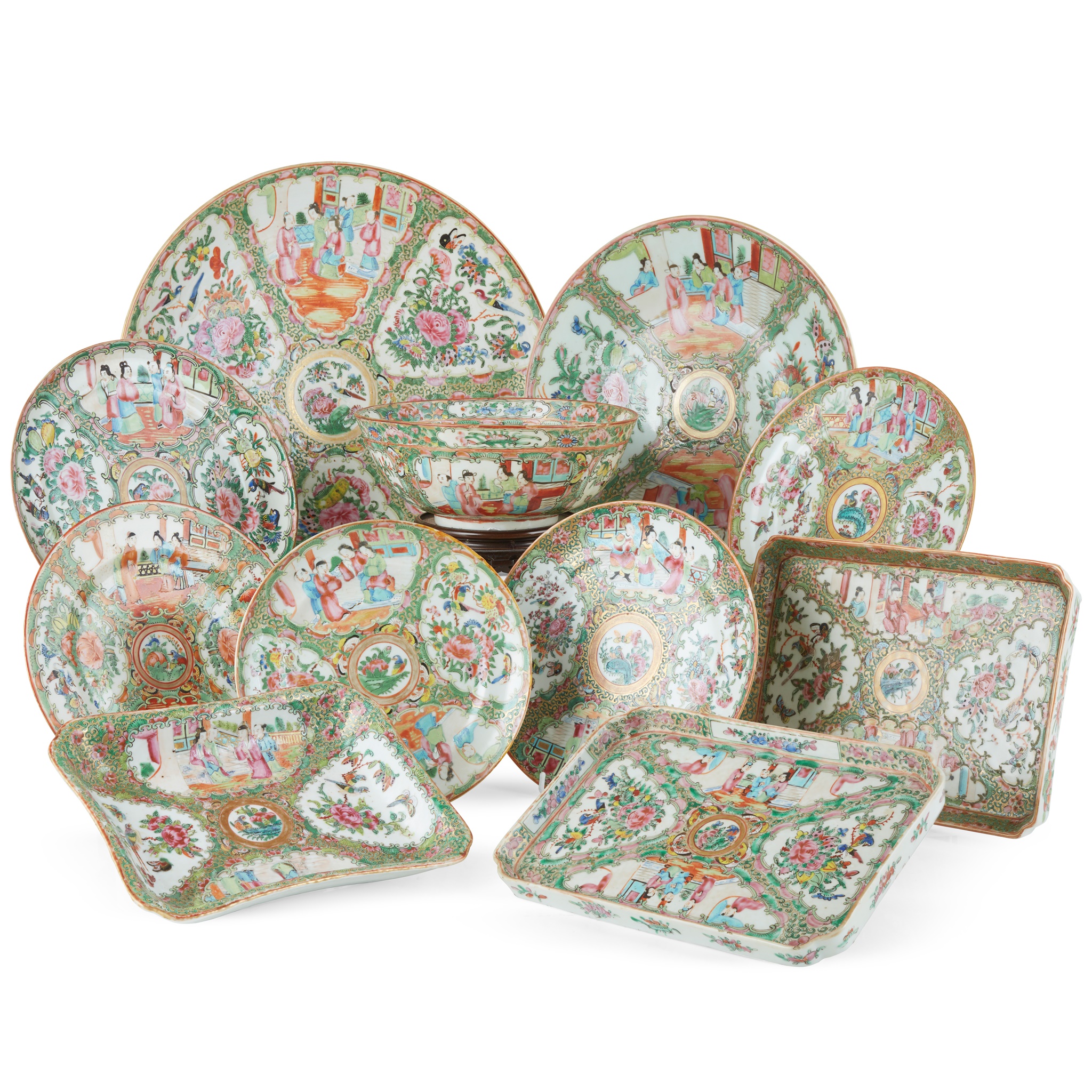 [A PRIVATE SCOTTISH COLLECTION] GROUP OF ELEVEN CANTON FAMILLE ROSE WARES