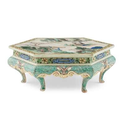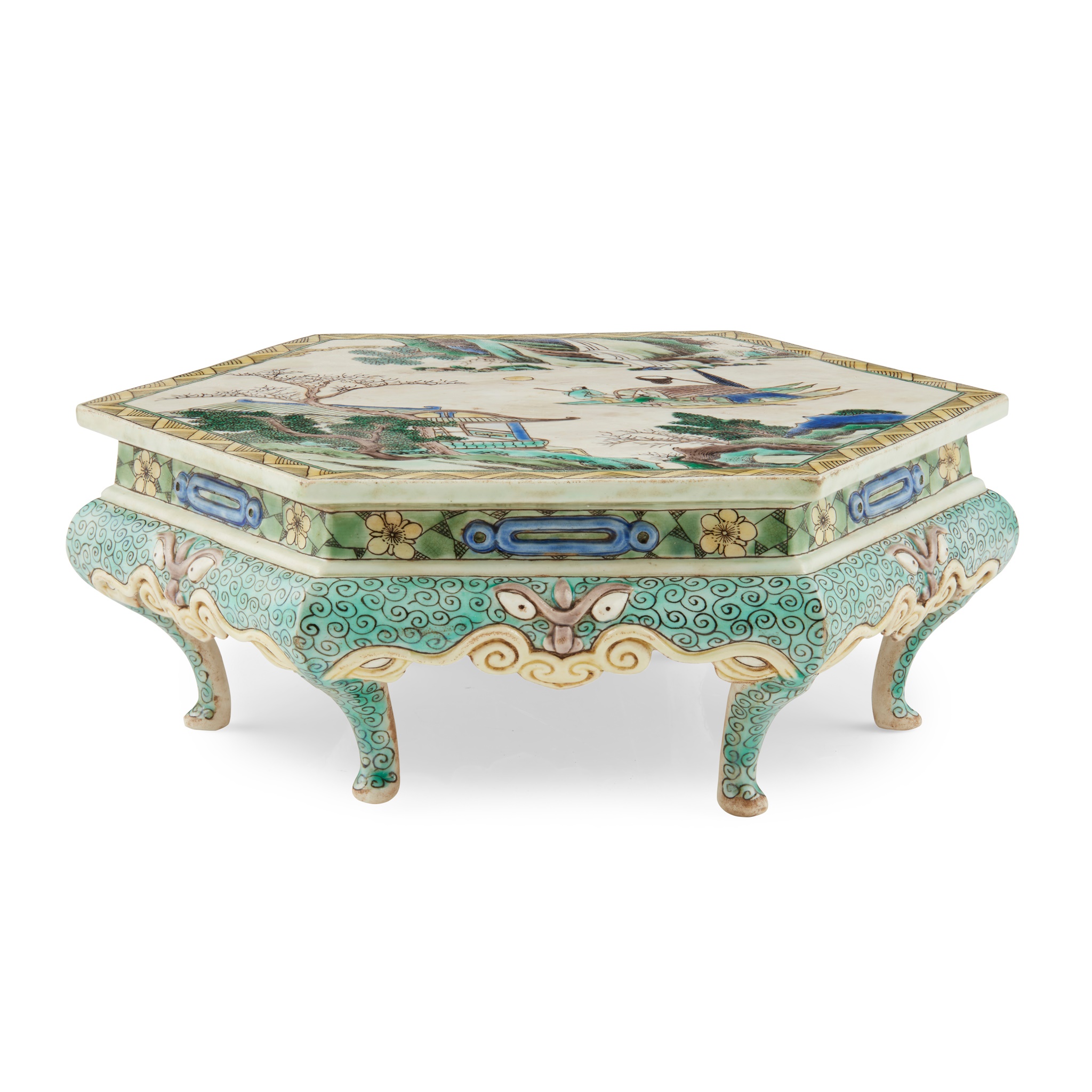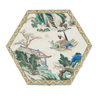 綠彩夜泊圖六方座