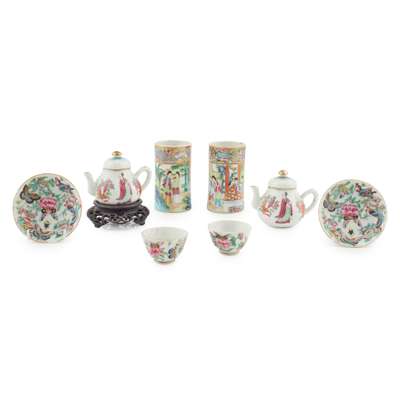 GROUP OF EIGHT CANTON FAMILLE ROSE WARES