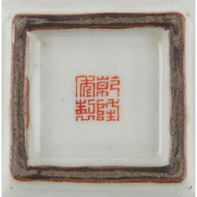 乾隆款 墨彩礬紅題詩方洗 含木座