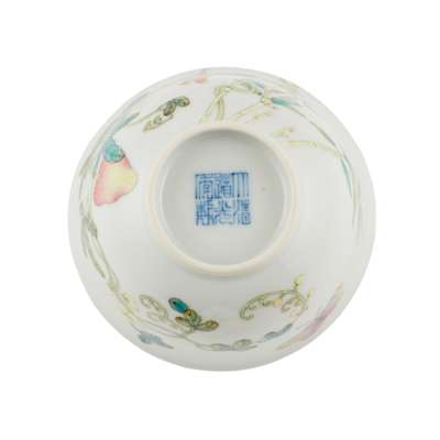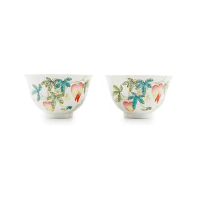 十九至二十世紀 道光款 粉彩石榴紋對碗(共兩件)
