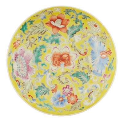 YELLOW-GROUND FAMILLE ROSE SAUCER