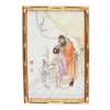 王琦款 粉彩窗前簪花圖瓷板 鑲木框