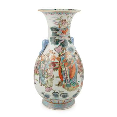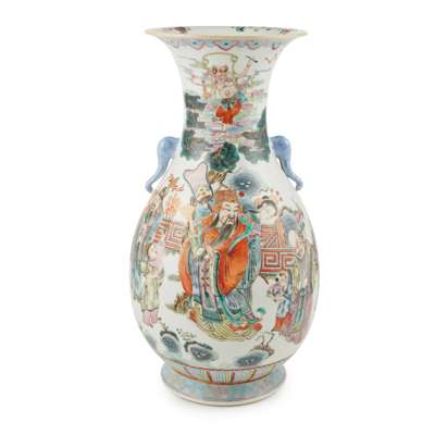 FAMILLE ROSE ELEPHANT-HANDLED 'SANXING IMMORTALS' VASE