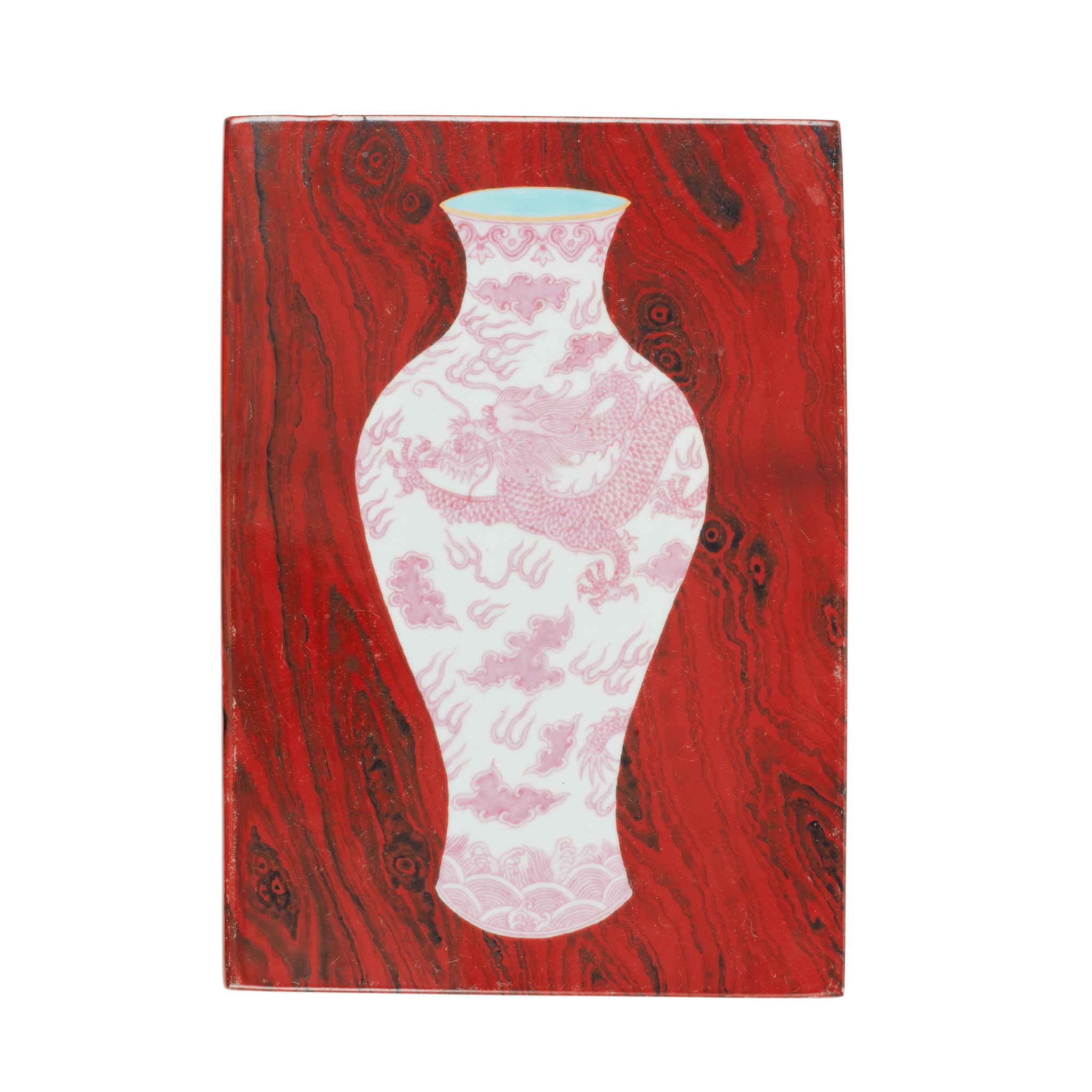 仿木紋釉胭脂紅料龍紋瓶瓷板