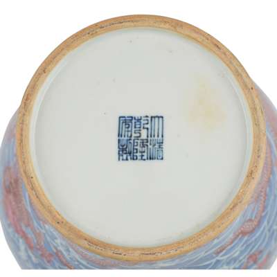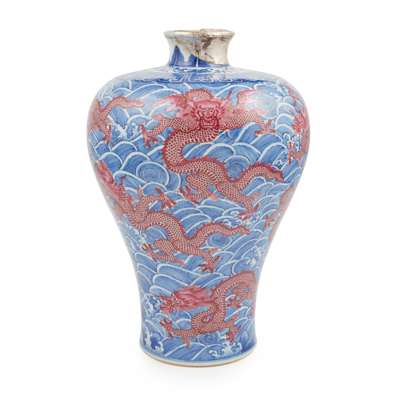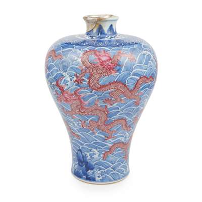UNDERGLAZE BLUE AND RUBY-RED-DECORATED 'NINE-DRAGON' VASE, MEIPING