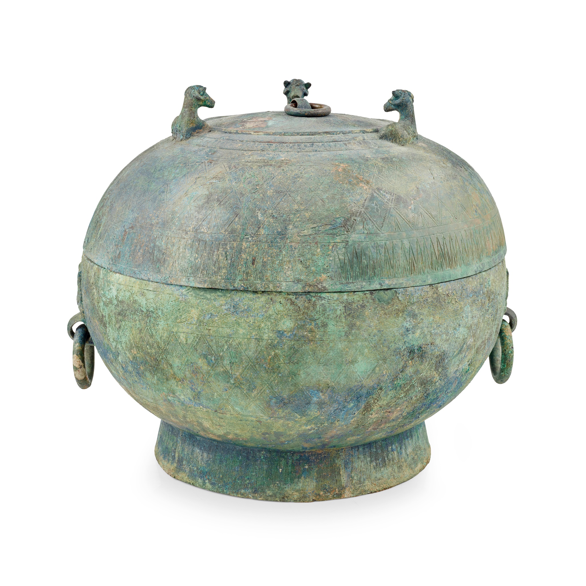 [A PRIVATE SCOTTISH COLLECTION, EDINBURGH] BRONZE RITUAL FOOD VESSEL AND COVER, DUI