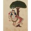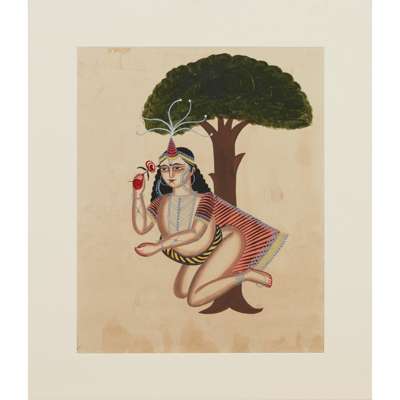 KALIGHAT PAINTING OF FEMALE DEITY UNDER A TREE