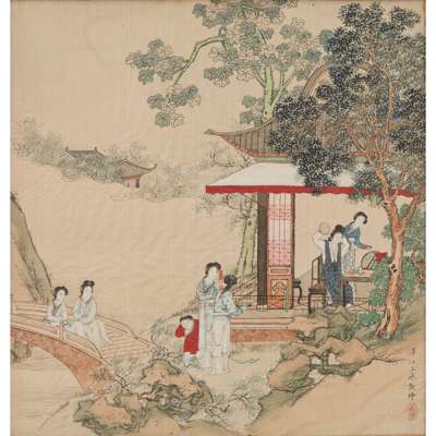 王承勳 仕女圖 絹本設色 鏡框(兩幅)