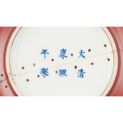 康熙款 紅釉鏜鑼洗