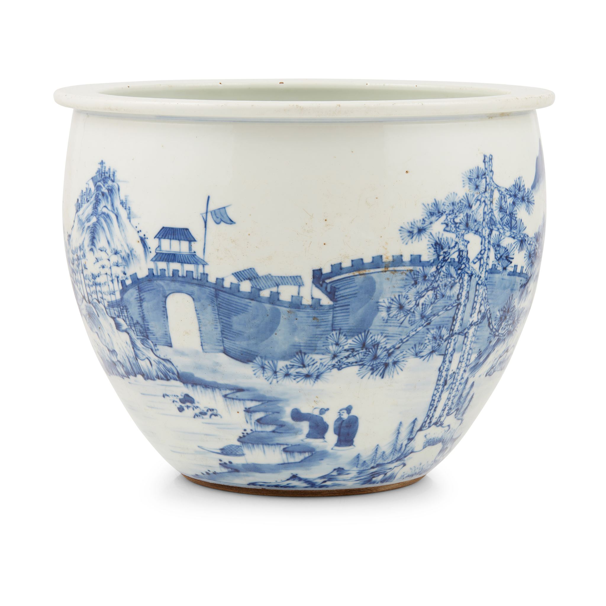清 青花山水城門卷缸
