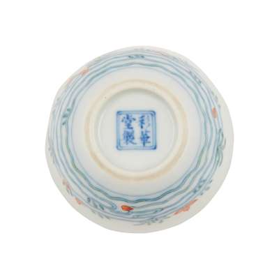 清及以後 花押款 青花團花紋瓜棱瓶 及 彩華堂製款 鬥彩落花流水紋臥足杯
