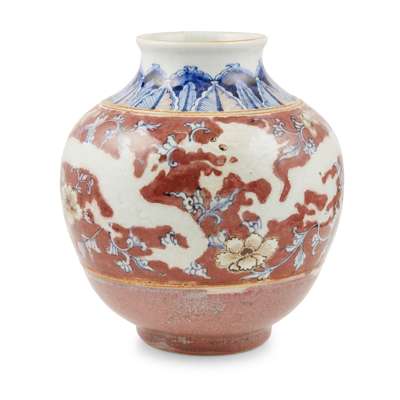 COPPER-RED AND BLUE AND WHITE DRAGON VASE