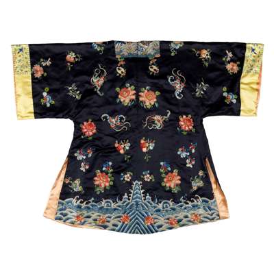 DARK-BLUE-GROUND SILK EMBROIDERED LADY'S ROBE