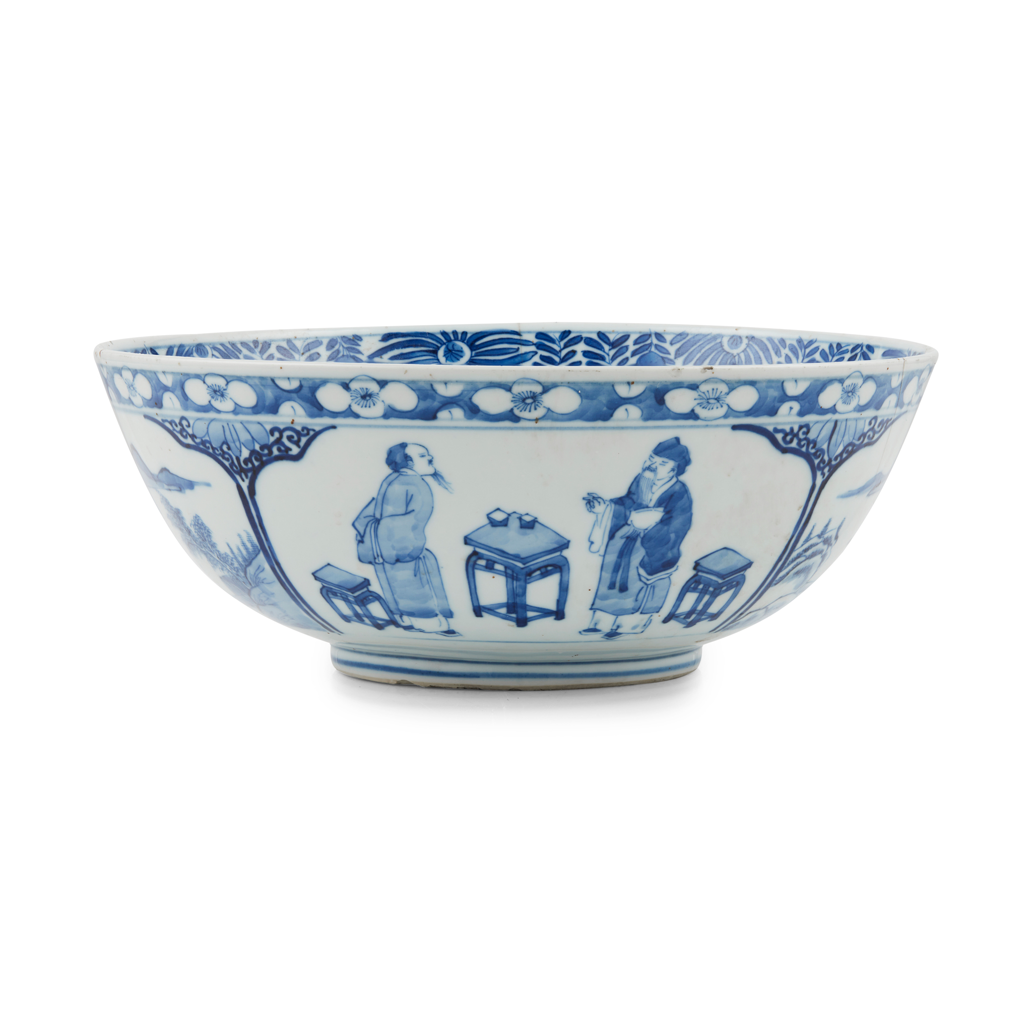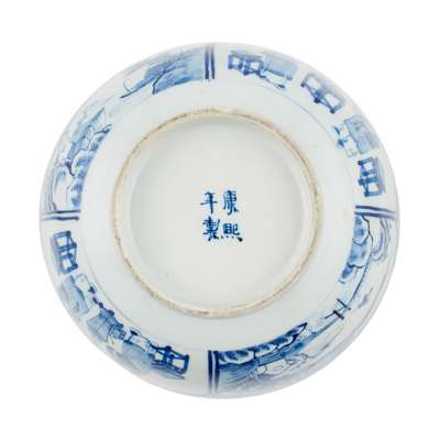 [FROM PENICUIK HOUSE] BLUE AND WHITE 'FIGURAL' BOWL