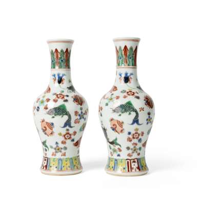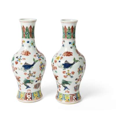 康熙款 五彩魚池紋搖鈴尊 (共兩件)