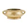 supported on a short splayed foot, the squatted globular body attached with two loop handles on either end, the base cast with a four-character apocryphal Xuande mark within a recessed rectangular reserve