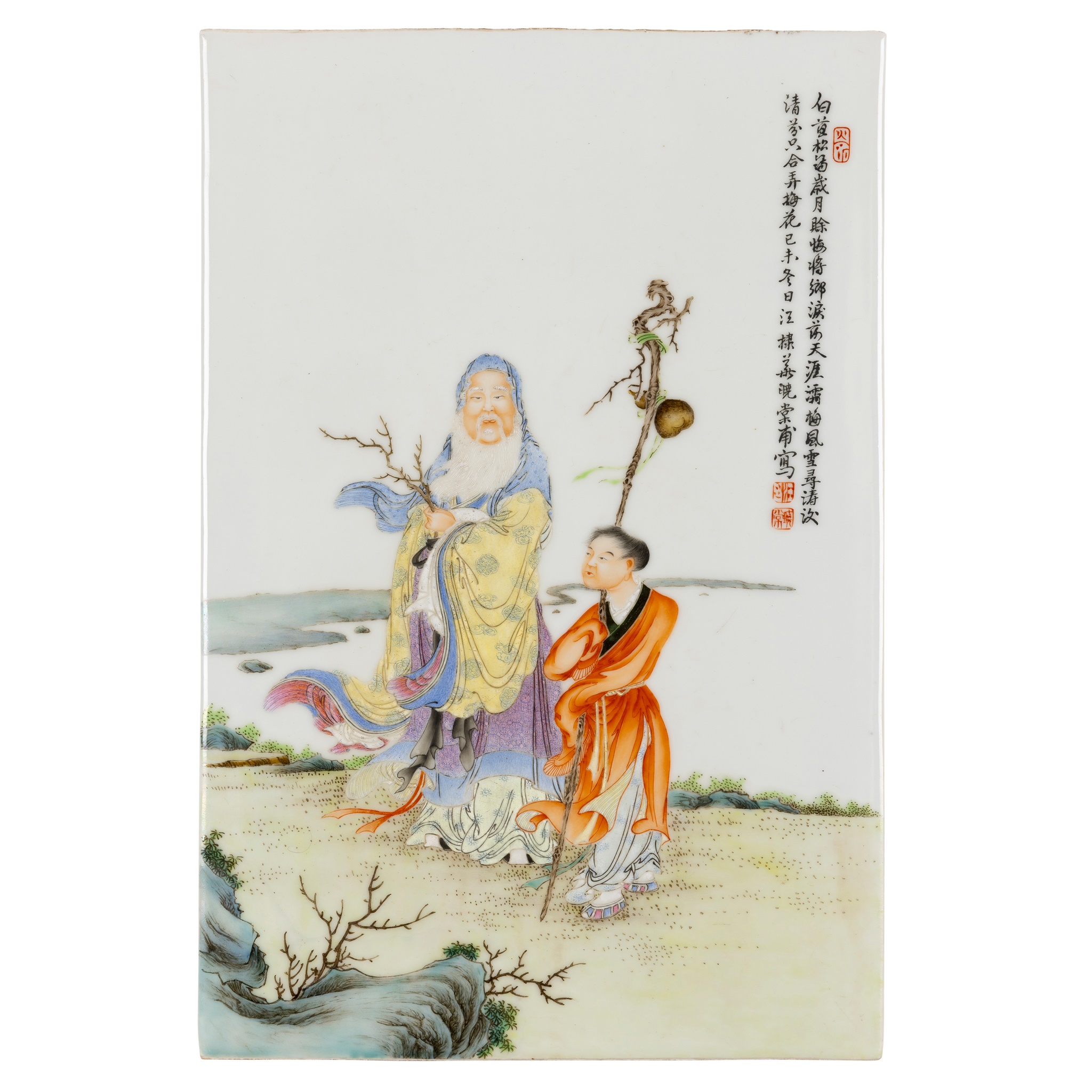 FAMILLE ROSE 'IMMORTAL' PORCELAIN PLAQUE