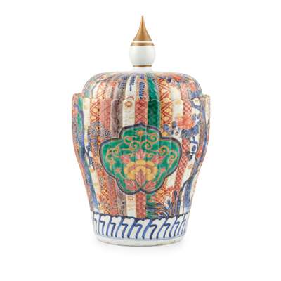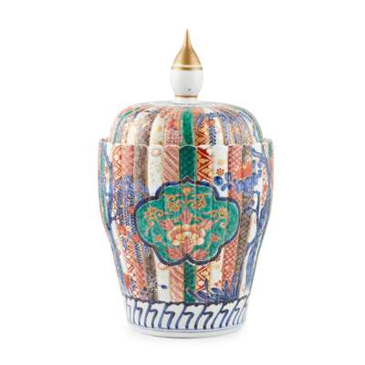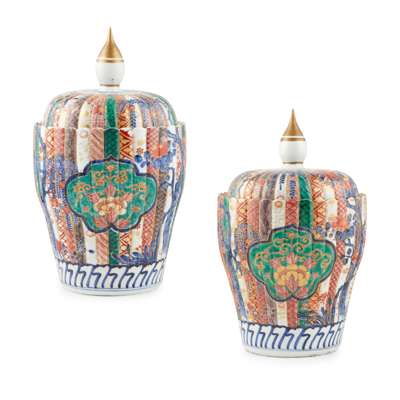 PAIR OF IMARI FLUTED JARS AND COVERS