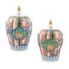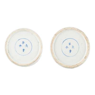 明治 長命富貴款 伊萬里燒花卉紋瓜棱蓋罐(一對)
