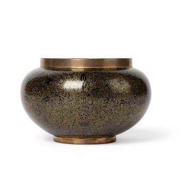 民國 老天利製款 銅胎掐絲琺瑯墨地花卉紋罐